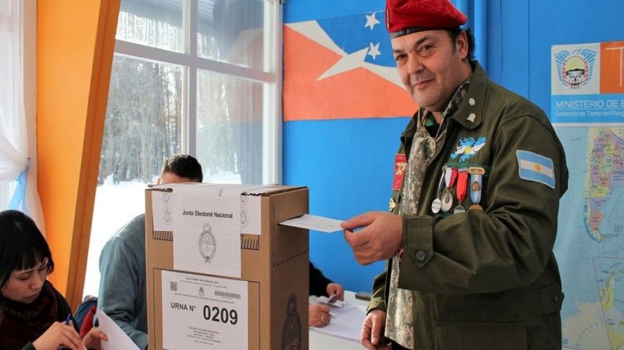 Osvaldo Hillar, el ex combatiente de Tierra del Fuego que fijó domicilio en las Islas Malvinas y logró que el Registro Civil de Ushuaia le aceptara como dirección la calle con el nombre de un compañero fallecido en la guerra de 1982, votó esta tarde en la escuela rural \"Entre Ríos\", situada a 55 kilómetros de la capital fueguina.