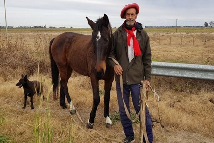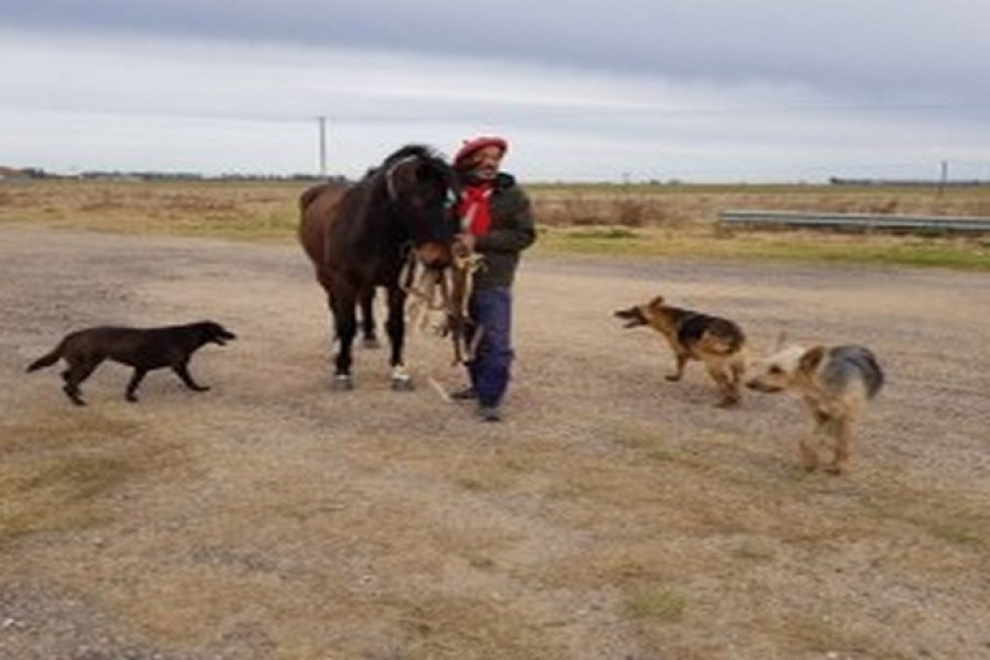 Tomas Sanchez es un jinete que partió desde Casilda en la provincia de Santa Fe para llegar, estima, en un año a Ushuaia donde vive su hijo al que pasó sin ver 26 años. Ahora que se produjo el encuentro y estando el solo, voy a terminar mis días al sur porque quiero que me entierren en la nieve, fueron sus palabras al ser consultado por Distrito Interior a la vera de la ruta 33 en la balanza a pocos metros del aero club donde hizo un alto para luego continuar hacia la ciudad donde pasará la noche, alimentará sus animales.