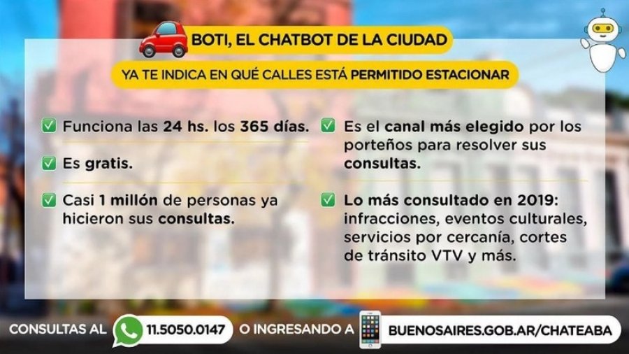 Se trata de una nueva función de Boti, el bot del Gobierno de la Ciudad para WhatsApp ganador de un premio internacional. El usuario envía una dirección exacta y como respuesta obtiene si puede estacionar o no.