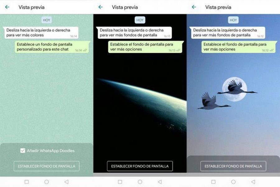 La nueva actualización permite modificar el fondo de pantalla en todos los chats o establecer uno para un chat en particular. Además, incorpora la opción de elegir fondos de pantalla específicos para el modo oscuro o claro, y atenuar el fondo de pantalla para el modo oscuro.