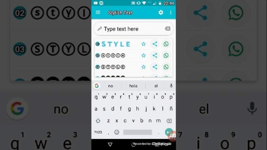 Luego se debe seleccionar el icono de estrella que aparece junto al estilo seleccionado y abrir WhatsApp, donde aparecerá una burbuja flotante de Stylish Text al escribir el texto. Al presionarla, se modificará por la tipografía elegida anteriormente.