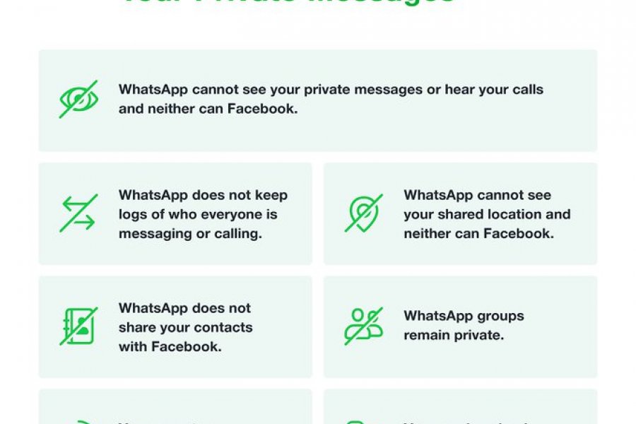 LA LISTA DE COSAS QUE WHATSAPP ASEGURA QUE NO SABRÁ NI COMPARTIRÁ CON FACEBOOK INCLUYE: