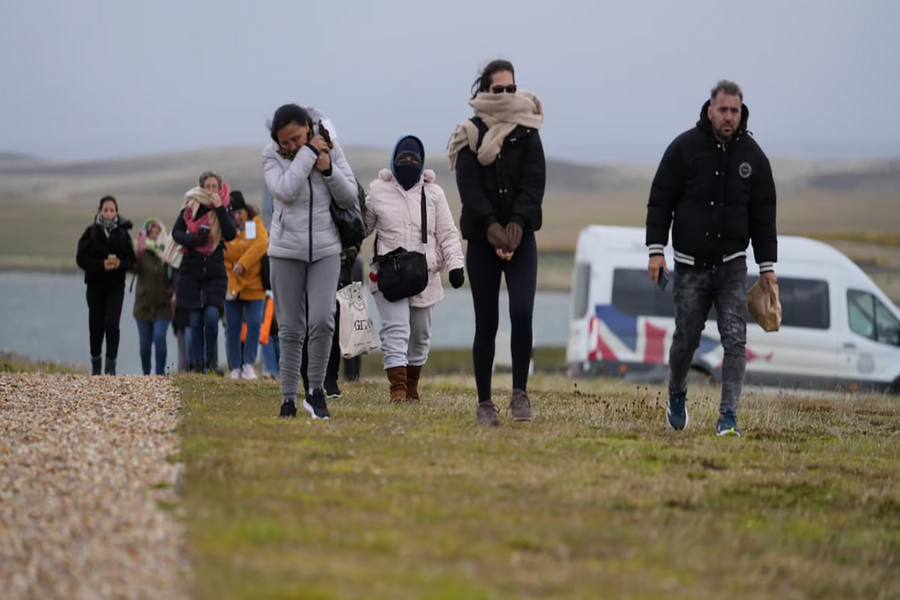 Abrigados como si fuera pleno invierno, así estuvieron los familiares. Detrás una bandera británica, no de las islas, le recuerdan al visitante quien es quien