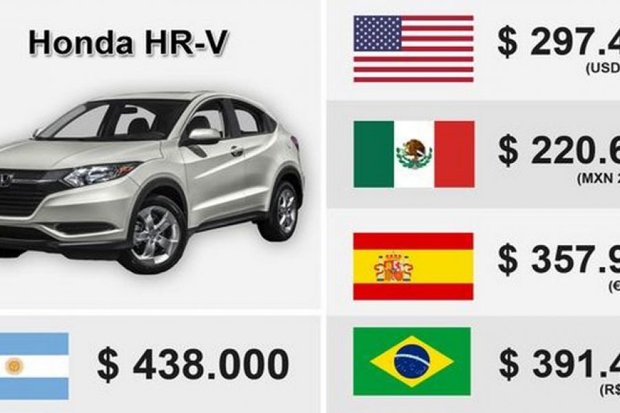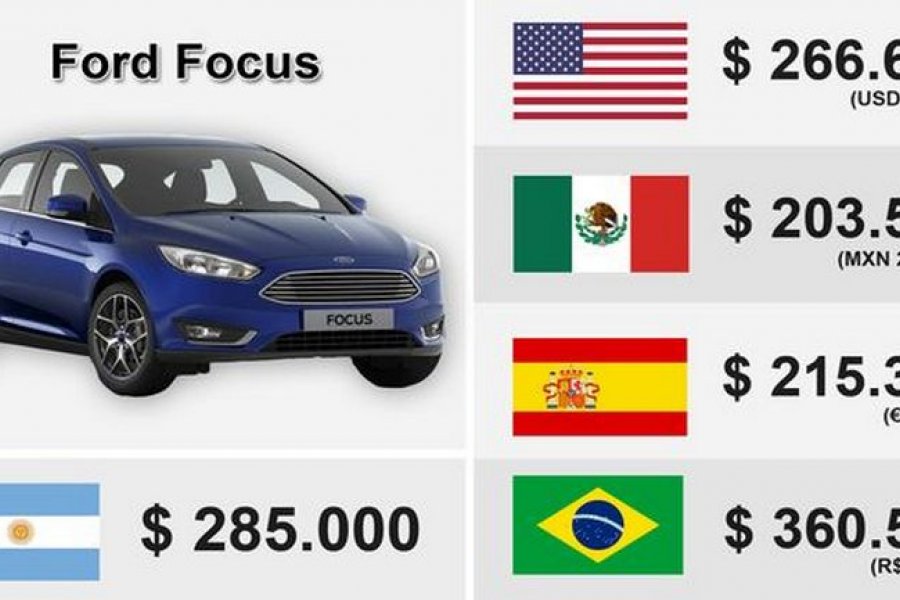 Algo similar se advierte en el caso de los automotores, aunque con una brecha en términos monetarios inquietante, sea de tecnología japonesa o americana. Un Honda HR-V 1.8 de 140 CV que en la Argentina se vende a unos $438.000, en el mayor socio del Mercosur, Brasil se puede comprar por 78.700 reales ($391.500 aprox.); en México cotiza a 283.900 pesos de ese país ($220.644 argentinos); en Estados Unidos a USD 19.215 ($297.400); y en España a 21.900 euros ($357.973). Algo similar sucede con el Ford Focus 1.6 125 CV que se puede adquirir localmente a $285.000, luego de haber estado en $345.800 en agosto pasado, vale 72.490 reales en Brasil, unos $360.600; pero un poco más lejos, en México se vende a $261.900 mejicanos ($203.546); en Estados Unidos a USD 17.225 ($266.600); y en España a 13.175 euros (215.353 pesos).
