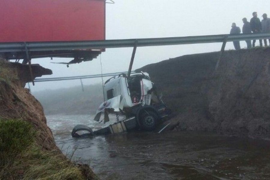 En la mañana de hoy, un camión que circulaba por Ruta 3 terminó con su cabina hundida en el agua que el temporal comenzó a acumular debajo de los cimientos de la ruta. La misma cedió y la destruyó por completo a 20 kilómetros de Garayalde. El conductor del camión está bien de salud, sólo sufrió golpes de mediana consideración.