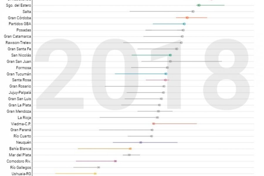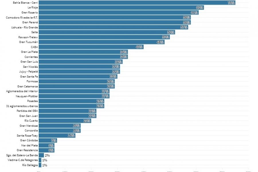 Eso no significa que haya sido el aglomerado donde más haya aumentado la pobreza. De hecho, según un informe especial del Instituto Argentino de Análisis Fiscal (IARAF), Bahía Blanca-Cerrifue el aglomerado donde más creció la pobreza en un año. Allí, la pobreza aumentó 75% al comparar la medición del segundo semestre de 2018 con la del segundo semestre del año anterior.