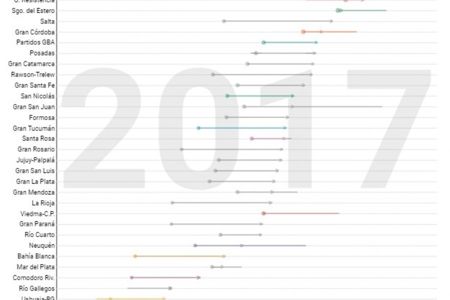 Por eso sería un error preguntarse en qué provincias hay más personas pobres. Lo correcto es preguntarse qué sucede (o sucedió) en cada uno de los 31 centros urbanos del país, o sea, aquellas ciudades con más de 500 mil habitantes.