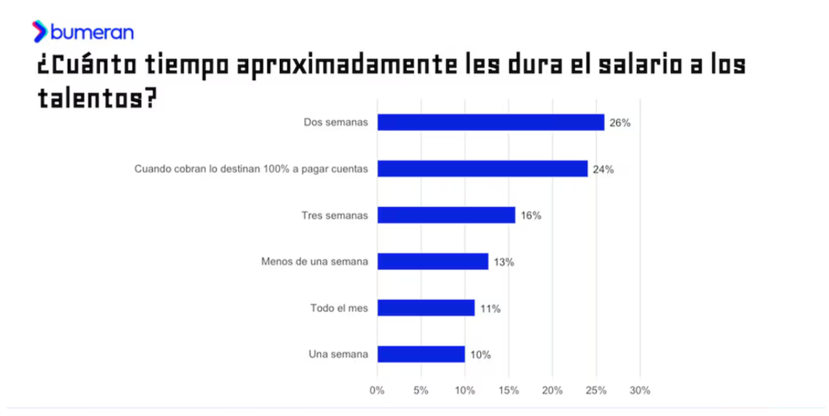 El termómetro surge de un informe de Bumeran realizado en septiembre sobre 1.854 trabajadores del país (6.913 encuestas en la región). El dato central: el 86% afirma que su sueldo no cubre las necesidades básicas y el 58% percibe una pérdida de poder adquisitivo en los últimos meses. Apenas un 10% dice haber mejorado; para el 32% todo quedó igual.