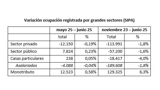 Mientras los empleos en relación de dependencia retrocedieron, el trabajo independiente tuvo una leve mejora del 0,3%. El motor fue el monotributo, que sumó más de 12.000 inscriptos en junio. Aun así, el empleo agregado permanece en niveles similares a los de hace una década.