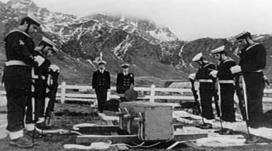\"Mi padre murió instantáneamente y fue sepultado con todos los honores militares en Grytviken. El comandante Bicain presidió la ceremonia, a la que también asistió Coward\", relata con templanza Cristian.