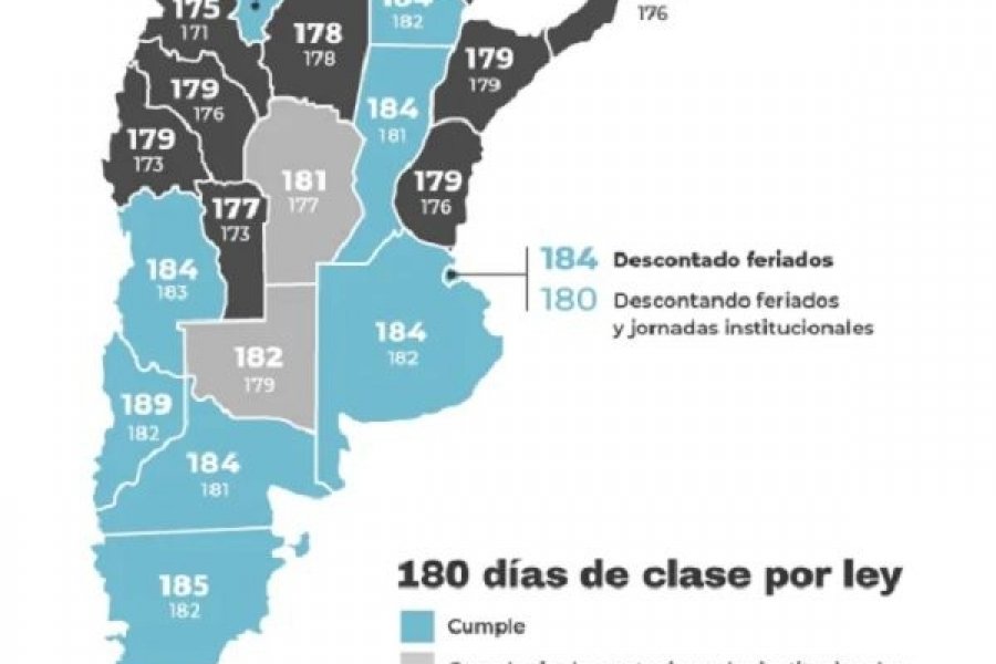 Enseñar con acento: más docentes extranjeros dan clases en la Ciudad Las catorce jurisdicciones que contemplarían este escenario son: Corrientes (179 días), La Pampa (179 días), Salta (179 días), Santiago del Estero (178 días), Tierra del Fuego (178 días), Córdoba (177 días), Entre Ríos (176 días), La Rioja (176 días), Misiones (176), Jujuy (175 días), Formosa (174 días), San Juan (173 días), San Luis (173 días) y Catamarca (171 días).