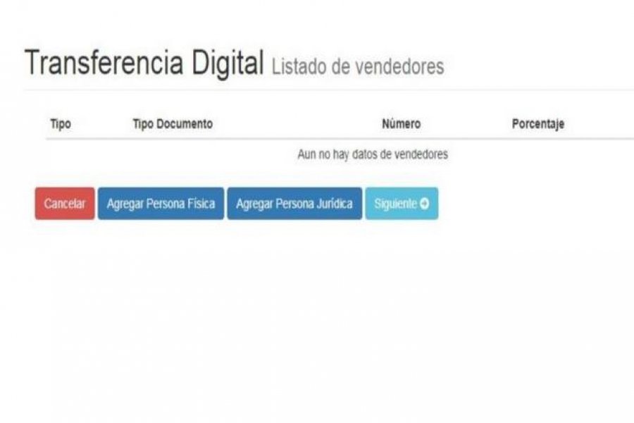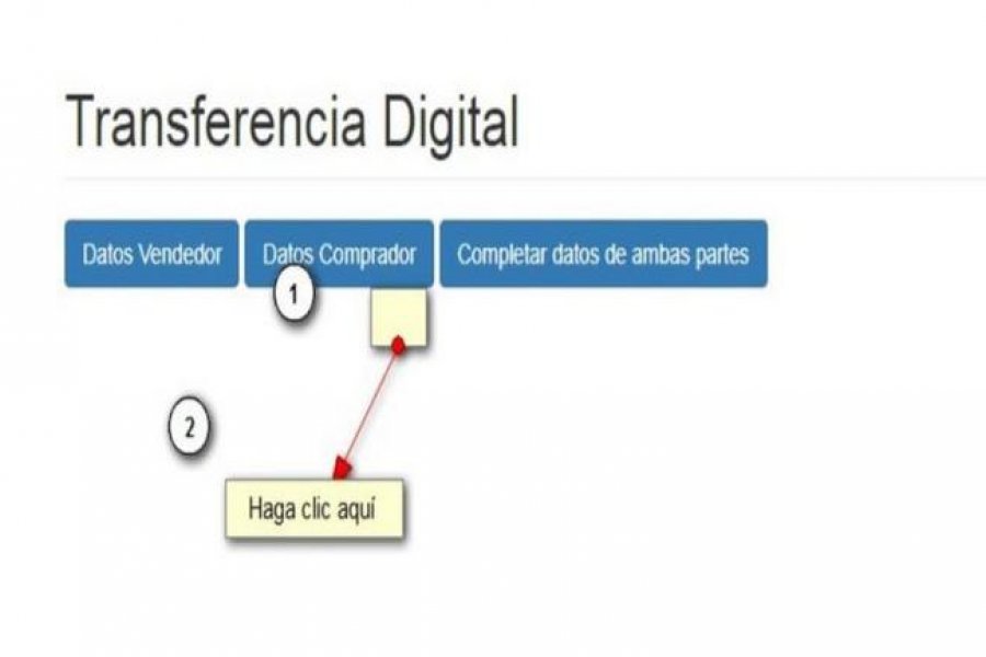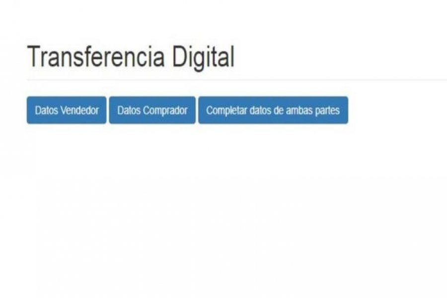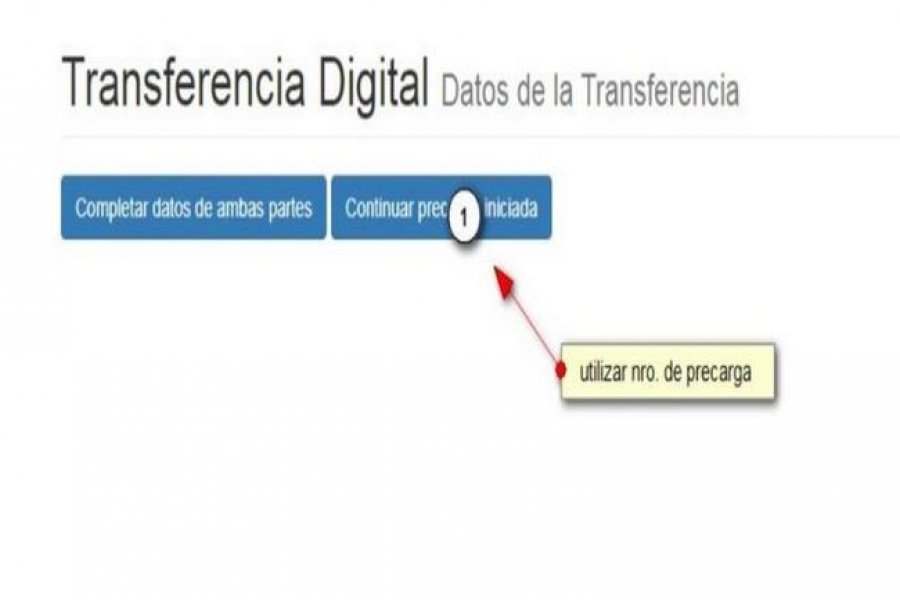 En caso que la transferencia digital sea hecha por el comprador, la pantalla arrojará dos opciones: \"Completar datos de ambas partes\" o \"Continuar la precarga iniciada\".