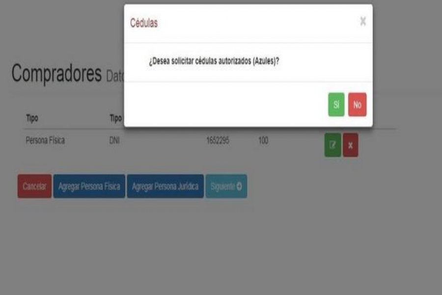 Aparecerán los botones \"Datos vendedor\", \"Datos comprador\" y \"Completar datos de ambas partes\". Elegir el correspondiente, teniendo en cuenta que si no se encuentran ambas partes juntas, se deberá iniciar la carga por \"Datos vendedor\".