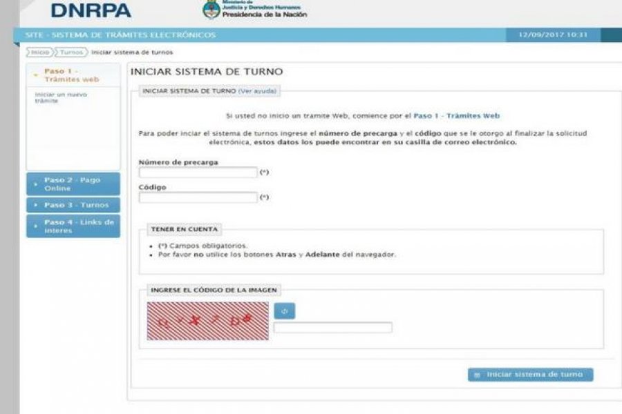 El sistema lo enviará a la pantalla de turnos online. Se podrá acceder con el número de precarga y el código validador remitido por mail. Allí se indicará también la documentación a presentar, datos del registro seccional, y el día y la hora del turno.