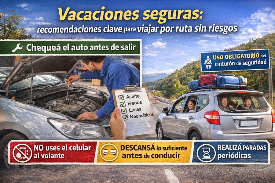 Con el comienzo del movimiento turístico y un mayor flujo de vehículos en las rutas, se refuerza el llamado a extremar las medidas de prevención para evitar siniestros viales durante los viajes de descanso. La consigna es clara: manejar con responsabilidad es parte fundamental de unas vacaciones seguras.