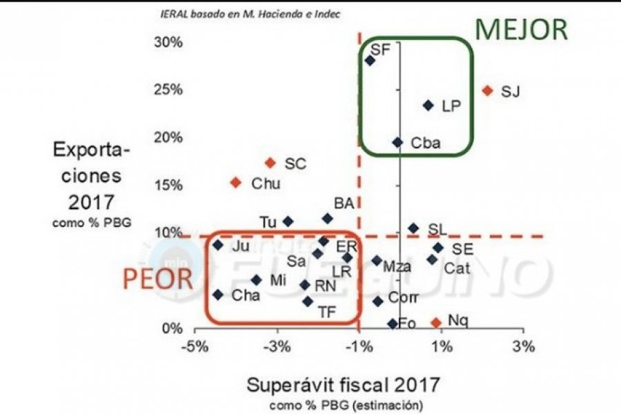 Desde una perspectiva regional, en 2018, las provincias mejor posicionadas son aquellas más exportadoras, más diversificada en productos exportados, y sin complicaciones serias en sus finanzas gubernamentales.