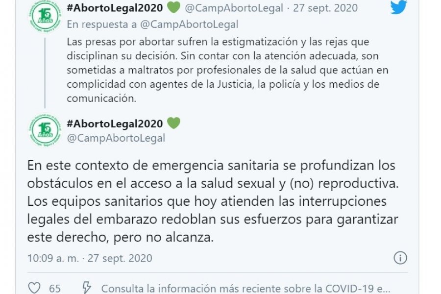 \"En este contexto de emergencia sanitaria se profundizan los obstáculos en el acceso a la salud sexual y (no) reproductiva. Los equipos sanitarios que hoy atienden las interrupciones legales del embarazo redoblan sus esfuerzos para garantizar este derecho, pero no alcanza\", concluyeron.