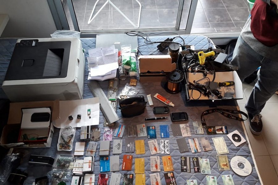 El operativo se llevó adelante junto a la Oficina del Ciberdelito contra el Sistema Financiero. Se trabajó junto al subcomisario Victor Vega, responsable del operativo en la ciudad de Buenos Aires. En el operativo se detectaron bandas magnéticas, conectores de ingreso, skimmer (dispositivo que extrae la información de la tarjeta, es un lector de banda magnética), computadoras, notebook, documentación falsa, boquillas, tarjetas en blanco e impresora de tarjetas.