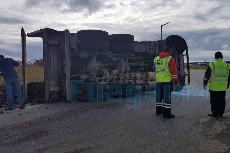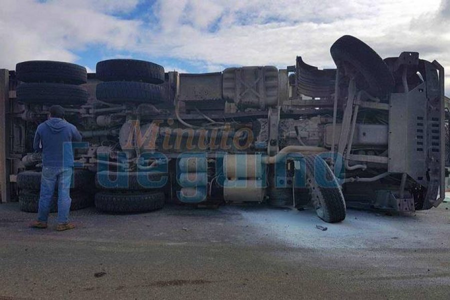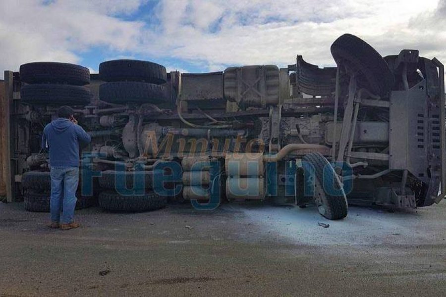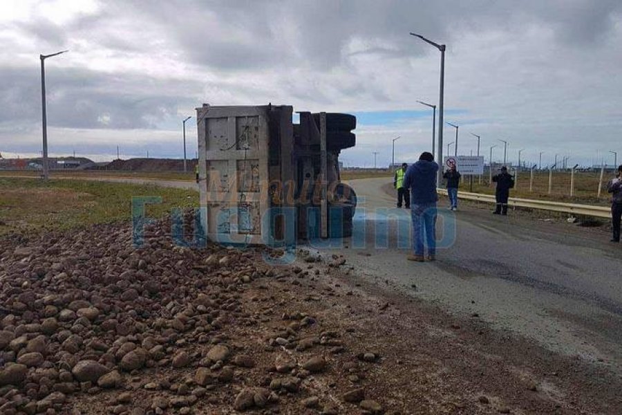 El camión volcador que transportaba piedras volcó, esta unidad perteneciente a la empresa “Dos Arroyos” reventó una de sus cubiertas izquierda trasera. Esto provocó que volcara sobre su lateral izquierdo cuando regresaba de