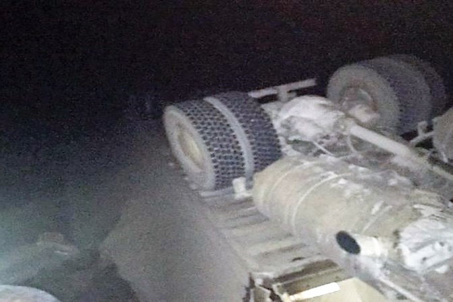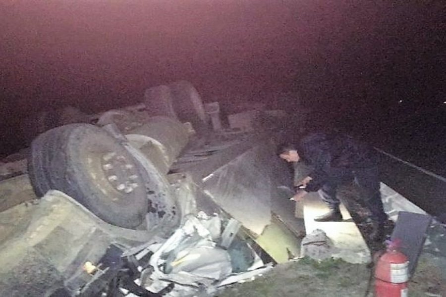 Un camión Scania que pertenece a la empresa Gra-Ca volcó en Ruta Nacional N°3, en la zona de Cañadón Minerales, al sur de Caleta Olivia, a la altura del kilómetro 1945. El hecho ocurrió alrededor de las 20 horas de la noche del lunes y como consecuencia del falleció un hombre.