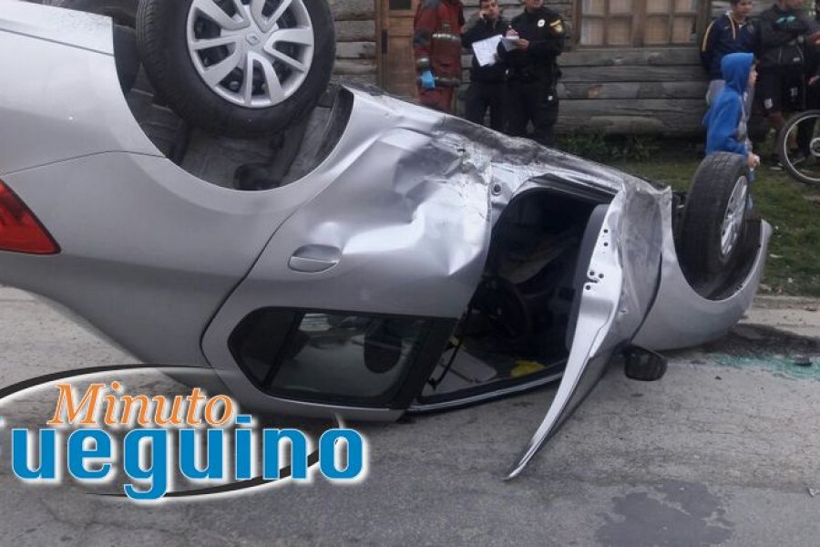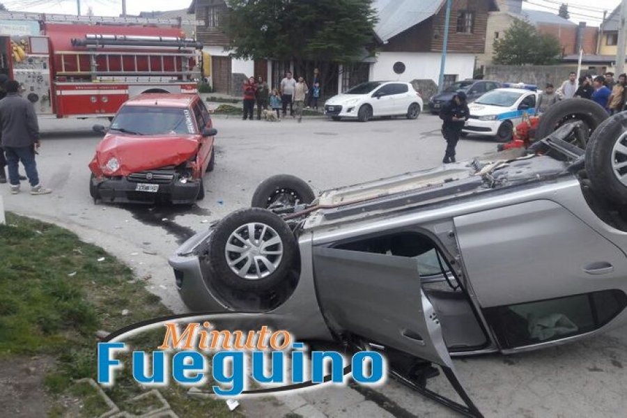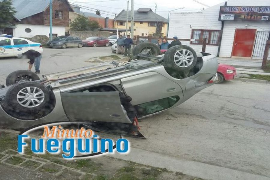 Un accidente de transito y posterior vuelco se registro alrededor de las 18 horas de este martes en la intersección de las calles Puerto Español y Lapataia en Ushuaia.