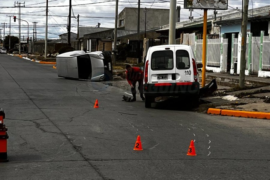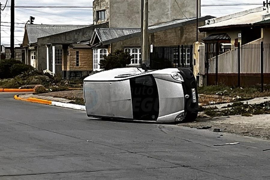El utilitario de color gris tras ser chocado terminó volcando. Su conductor presentaba dolencias, por lo cual debió ser trasladado hacia la Guardia del Nosocomio dado que aquejaba diversas dolencias.