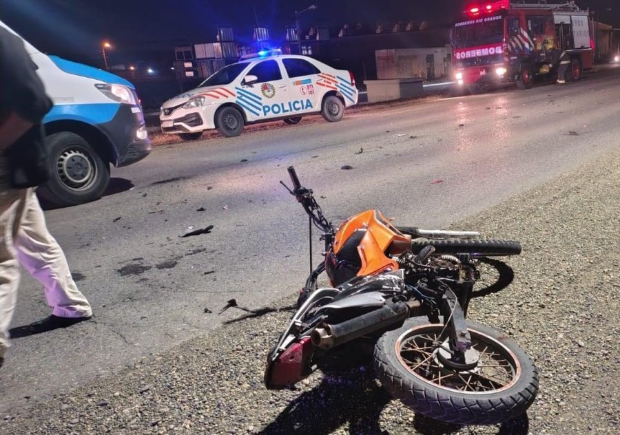 Personal de la Comisaría Quinta de Río Grande intervino en la noche de este sábado, alrededor de las 23 horas, a raíz de un accidente de tránsito ocurrido en calle Echelaine al 600, donde colisionaron un automóvil y una motocicleta.
