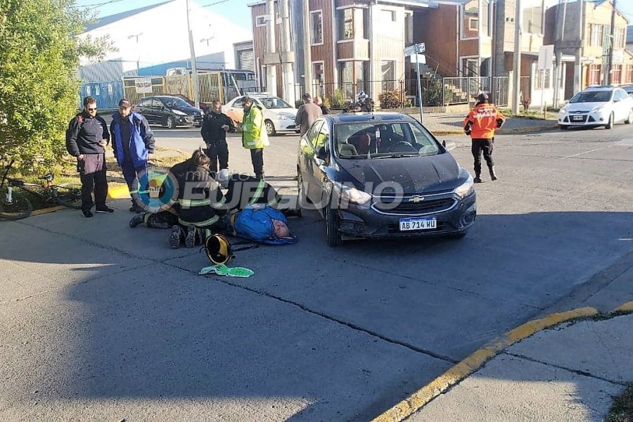 Producto del choque el ciclista debió ser trasladado hacia el Nosocomio Local, previa inmovilización de Bomberos Voluntarios.