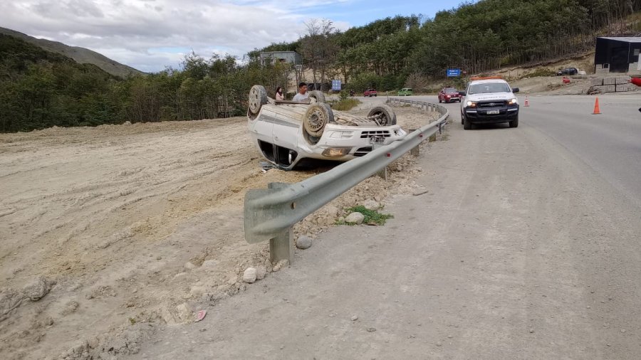 Personal de la Comisaría Tercera de Ushuaia intervino este sábado 24 de enero de 2026 en un siniestro vial ocurrido sobre la Ruta Nacional N.º 3, a la altura del sector de Depósitos Fiscales, donde un vehículo terminó volcado al costado de la calzada.