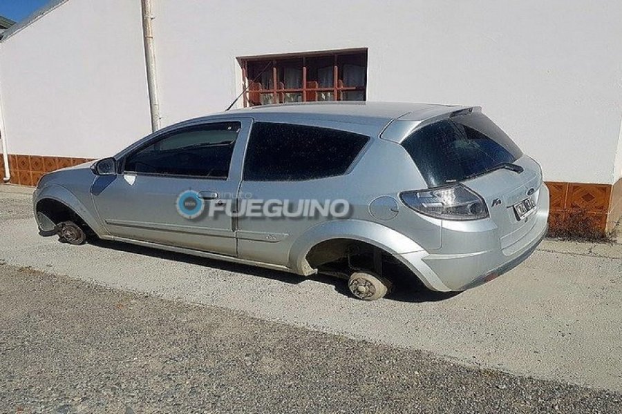 Esta vez los malvivientes robaron las cuatro ruedas de un automóvil Ford Ka, dominio MXH 378. Esta unidad se encontraba estacionado en un pasaje del lugar. Cabe señalar que las dos ruedas del lado del conductor quedaron apoyadas sobre la vereda, en tanto, el lado derecho quedó sostenido sobre un pedazo de hormigón.