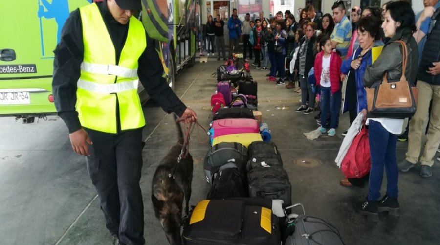Personal Policial de la División Servicios Especiales, Sección Canes, realiza tareas en conjunto con la División Narcocriminalidad y Delitos Federales llevando a cabo controles preventivos en diferentes puntos de acceso a la ciudad, asimismo en la terminal de ómnibus, lugar de ingreso de personas de distintas nacionalidades.