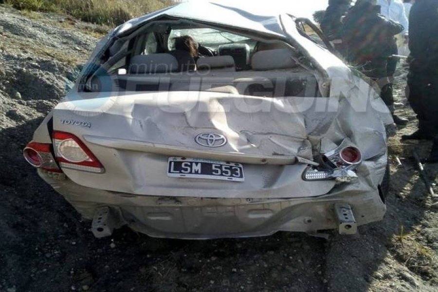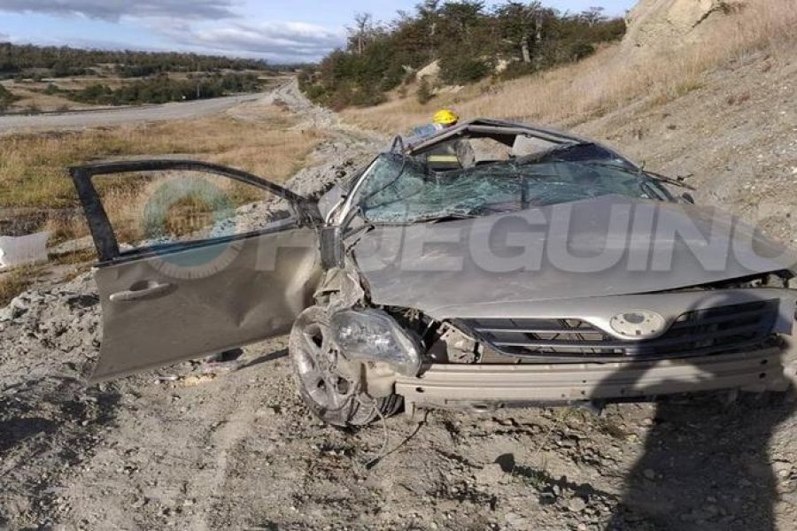 El Toyota Corolla transitaba con sentido sur norte y por causas que se tratan de establecer perdió el control de la unidad y termino volcando sobre la banquina, las ocupantes del rodado siniestrado resultaron ser Nahir Núñez (26), trasladada en ambulancia al Hospital Regional Rio Grande y la conductora Abril Alarcón (20) con politraumatismo en pierna, traslada al Centro Asistencial Tolhuin.