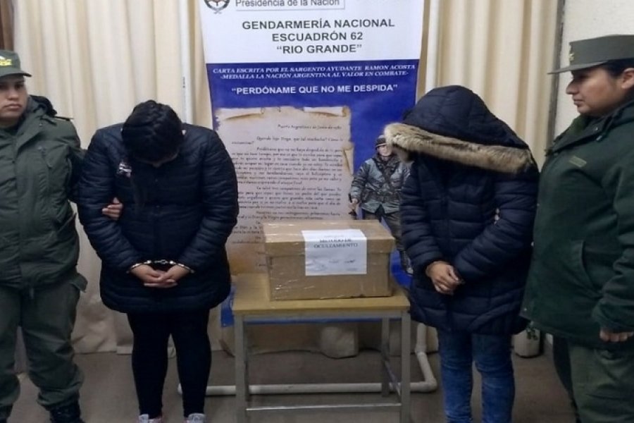 Gendarmería Nacional, en el marco de la lucha contra el narcotráfico llevada adelante por el Ministerio de Seguridad de la Nación, incautó 5 kilos 219 gramos de cocaína adosados a los cuerpos de dos mujeres, quienes fueron detenidas. Este procedimiento se desarrolló en la provincia de Tierra del Fuego.
