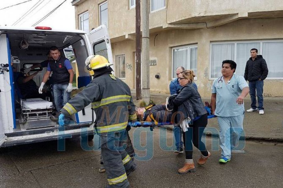 Producto de la violenta colisión trasladaron a ambos conductores hacia el Nosocomio previa asistencia de Bomberos Voluntarios.