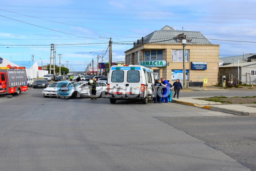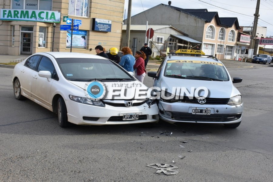 Todo ocurrió pasadas las 18 horas en el transitado cruce, cuando un vehículo afectado a la agencia de taxis ATURG se saltó el disco de “PARE” ubicado en calle Islas Malvinas e impactó contra uno de los costados de un Honda Civic.