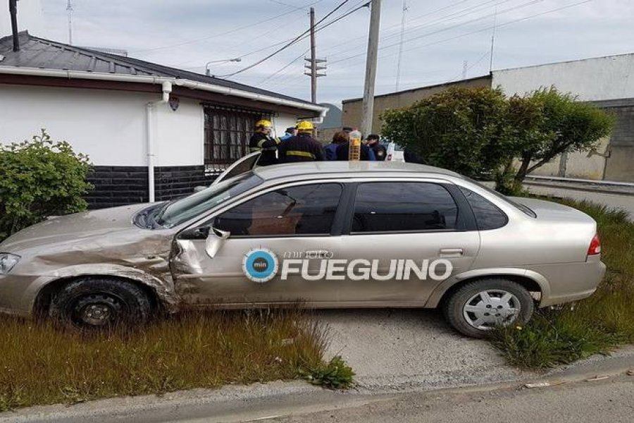 Producto de la violenta colisión el Chevrolet terminó su marcha contra un jardín perteneciente a una vivienda. Ambas personas fueron trasladadas al Hospital Regional Río Grande.