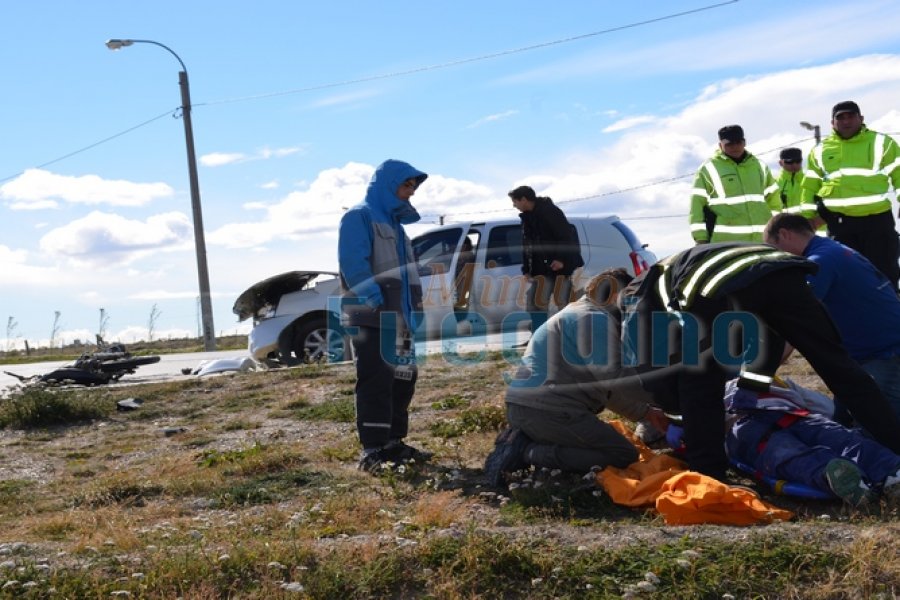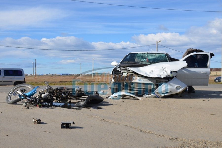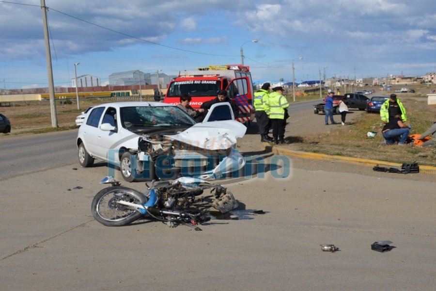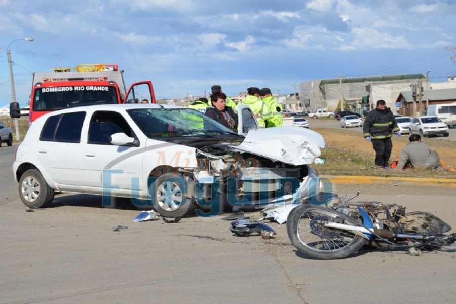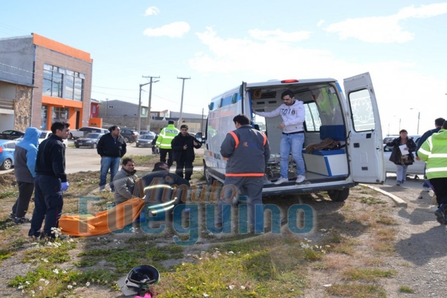 Producto de la colisión el motociclista debió ser socorrido por personal de Bomberos Voluntarios en primera instancia para posterior traslado hacia el Nosocomio Local. Diaz Jorge Alberto de 54 años, conductor del Clio debió ser trasladado de manera preventivamente, ya que se descompenso.