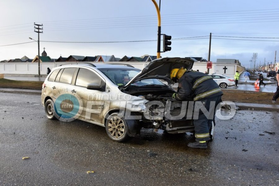 A los pocos minutos y metros de la persecución policial que acabo con una persona detenida una violenta colisión se registró en la intersección de la Ruta N°3 y la calle Colón.