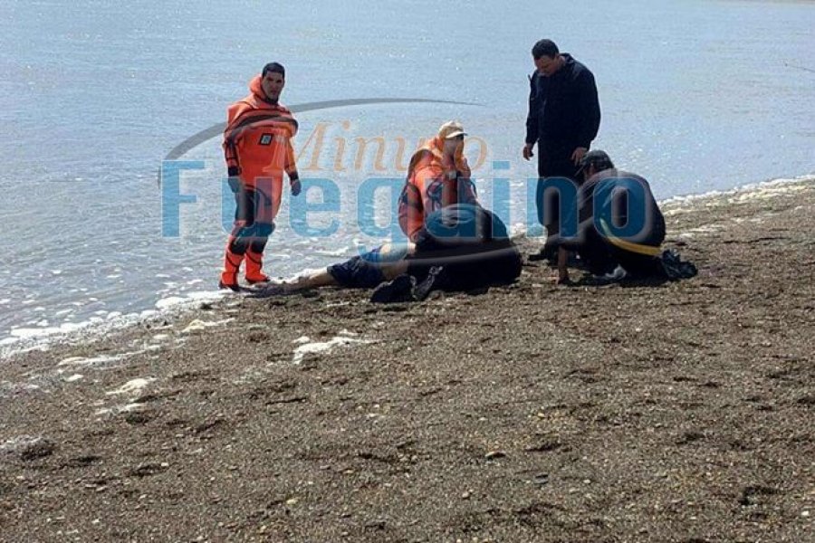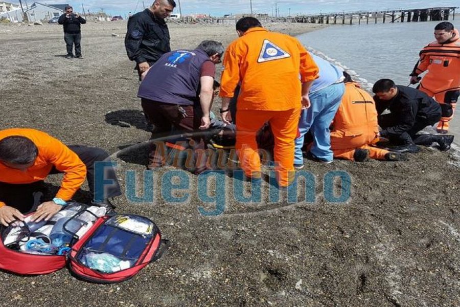 Un vecino de la ciudad que se encontraba viendo esta escena se introdujo al rio para ayudar a los uniformados. Finalmente pudieron rescatar y sacarlo a la costa, para su posterior traslado en ambulancia hacia la guardia del Hospital Regional Rio Grande.