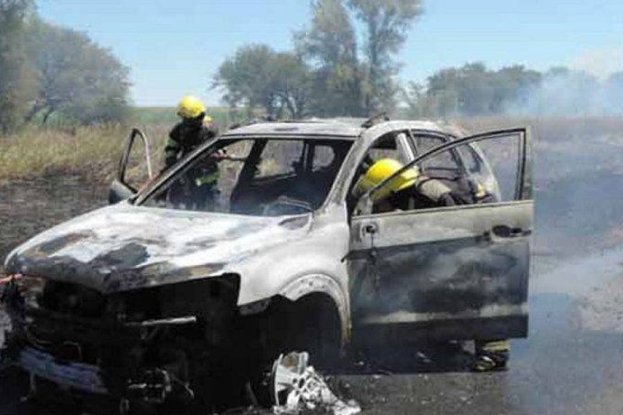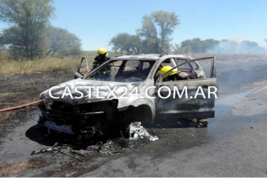 Una familia que regresaba desde Córdoba hacia Tierra del Fuego sufrió el incendio total de una camioneta Chevrolet Captiva, en el kilómetro 390 de la ruta nacional 35, al sur de Eduardo Castex. El inicio de las llamas es materia de estudio de los peritos, pero el conductor -sorprendido- detalló a los bomberos y policías: “Sentí una explosión y cuando paré en la banquina las llamas envolvieron la camioneta, no nos dejó ni bajar los bolsos”.