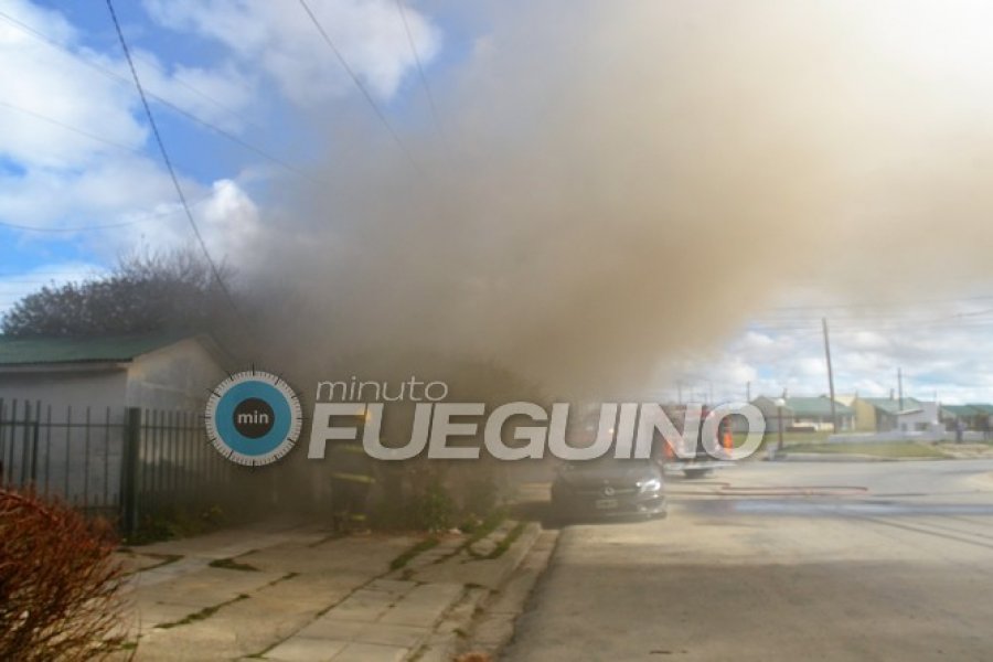 Del interior alcanzó una mujer que recién había vuelto de su trabajo. Vecinos llamaron a Bomberos, quienes en cuestión de minutos se hicieron presentes y comenzaron a sofocar el fuego que se apodera de esta vivienda.