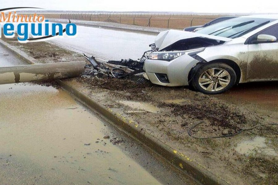 Un Toyota Corolla, al mando de Jaime Walter Orlando de 40 años se encontraba circulando por la Av. Juan Domingo Perón Sur. A escasos metros de la rotonda de calle Pacheco su conductor perdió el control de la unidad debido al estado resbaladizo de la calzada. Esto provocó que colisionaro de manera violenta contra un poste de luz. Producto del impacto el poste de hormigón se quebró, y terminó cayendo sobre la calzada opuesta.