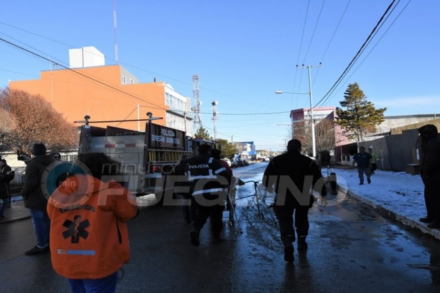 Rápidamente se hizo presente Bomberos Voluntarios y de la Policía quienes derribaron la puerta principal y asimismo la puerta de un deposito en donde se habría originado el fuego.
