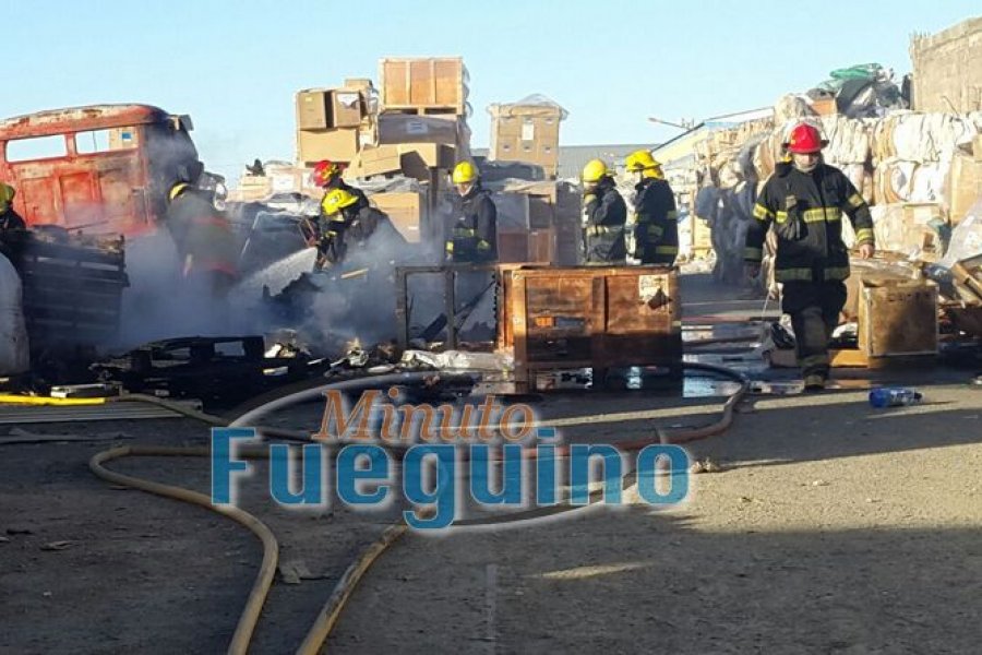 Varias dotaciones acudieron al lugar para sofocar el fuego que se originó en la zona del patio. Finalmente luego de unos minutos apagaron el fuego, evitando que se expanda a la gran cantidad de material acopiado.