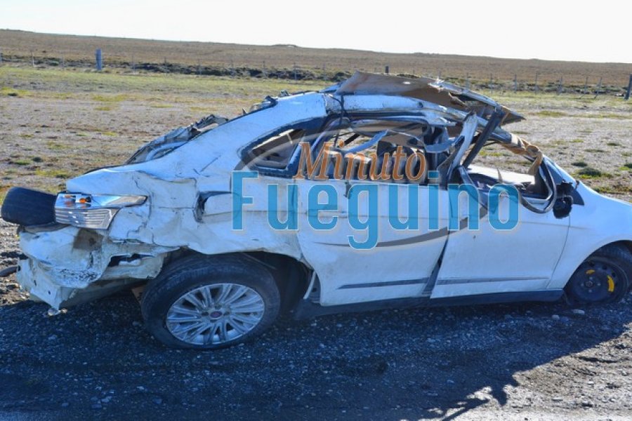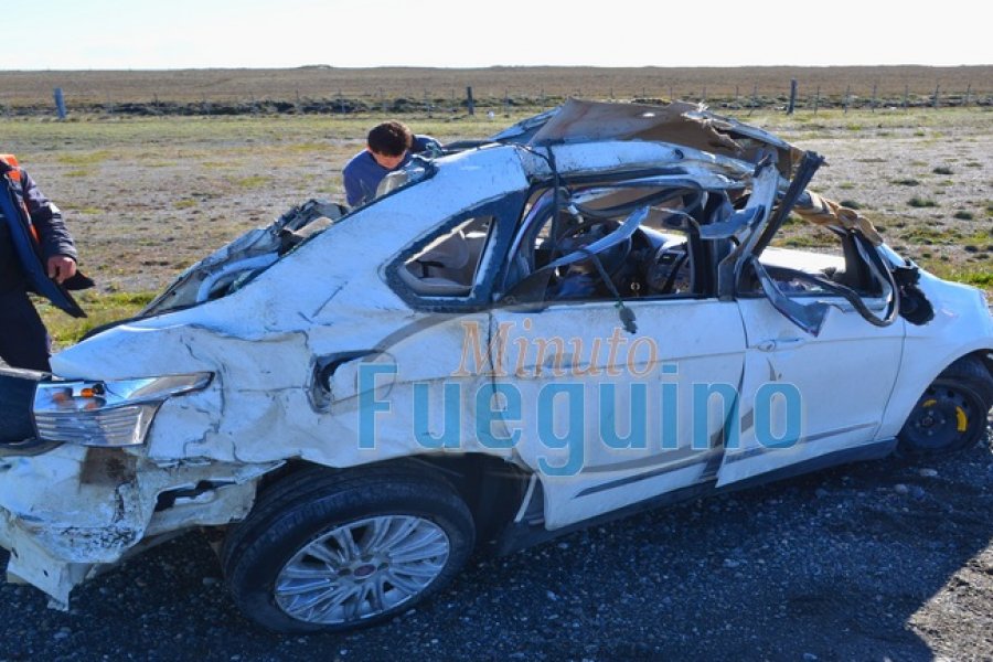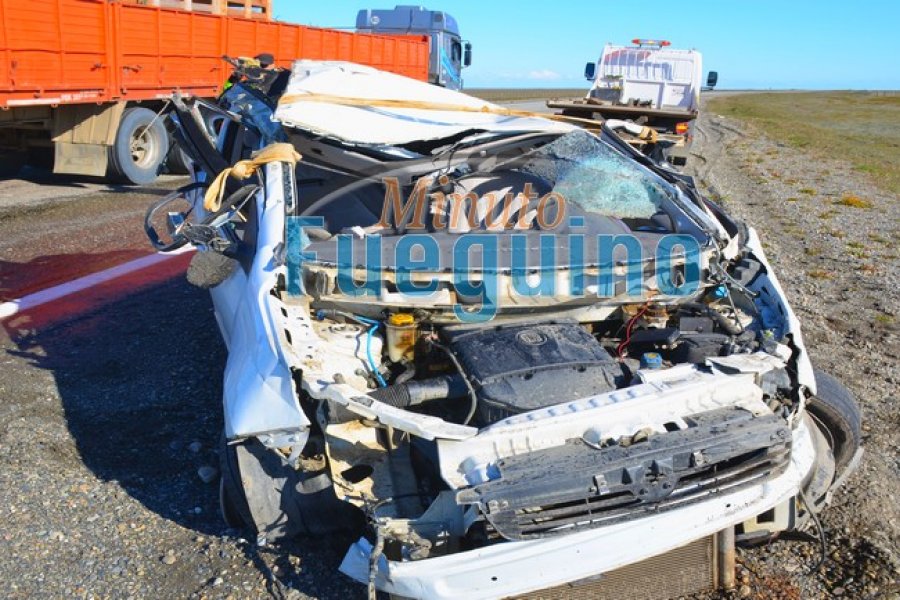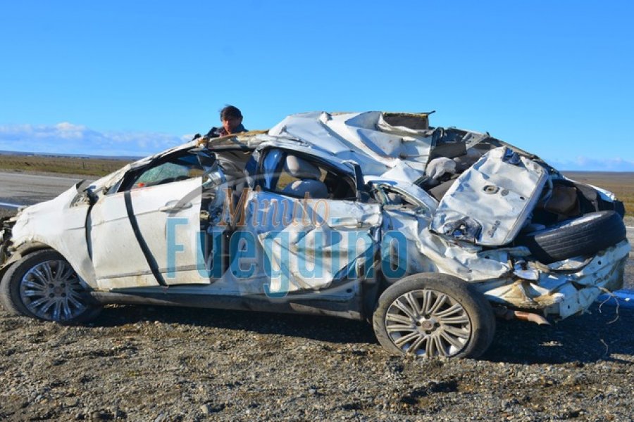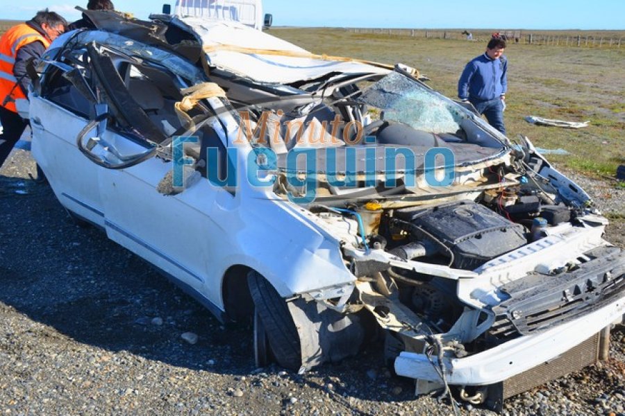 Este último joven, hijo de la funcionaria municipal Laura Rojo, se encontraba atrapado entre los hierros del rodado y fue rescatado por personal de Bomberos Voluntarios, siendo minutos después trasladado de urgencia al Hospital Regional Río Grande: permanece con estado de salud reservado.