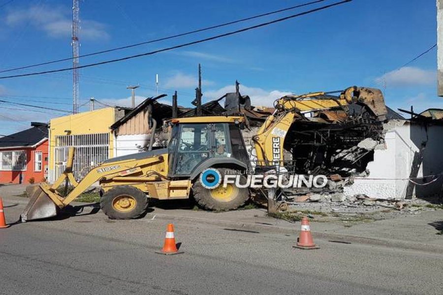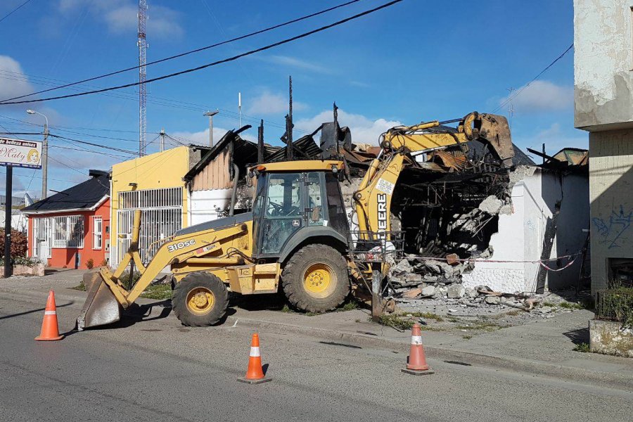 Cerca de las 8 horas de esta mañana una maquina perteneciente a la empresa “Cris” comenzó a demoler los restos de estructuras de la pensión ubicada en calle Piedrabuena 884.