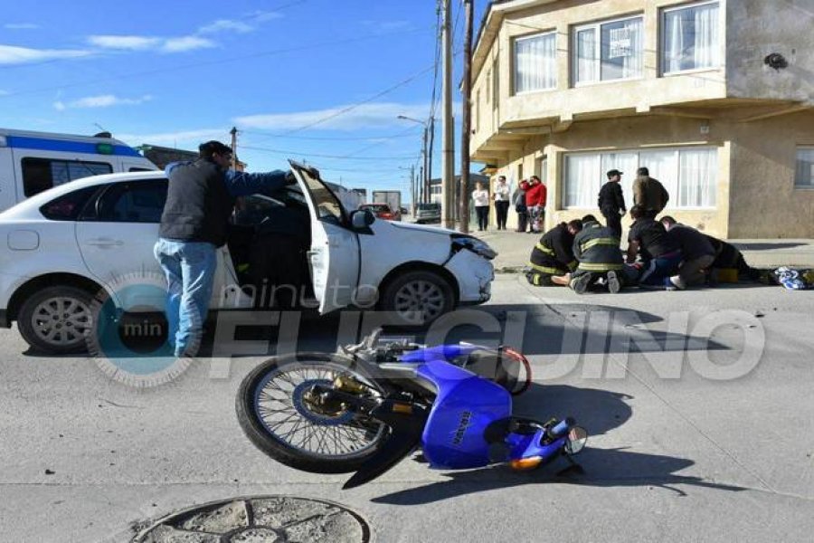 Personal de Bomberos Voluntarios asistió a la motociclista y fue trasladada al Hospital Regional Río Grande, de manera preventiva.