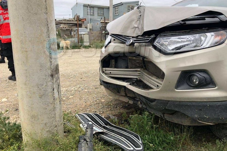 La camioneta Ford Eco Sport sufrió un derrape sobre la calle de ripio del sector, lo que hizo que colisionara contra un poste de alumbrado público.