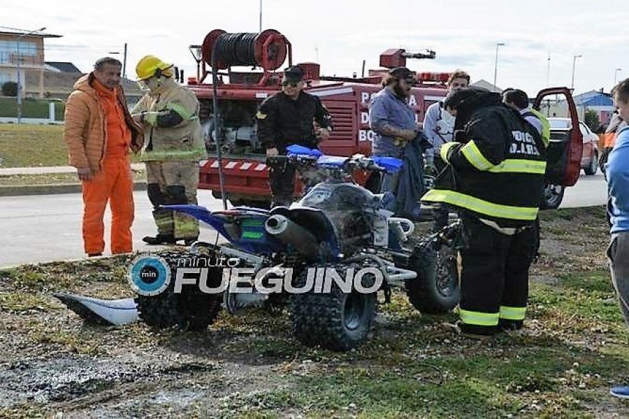 Durante la tarde de este viernes un principio de incendio se registró un cuatriciclo, el cual se encontraba en proximidades de la calle 20 de junio, más precisamente a escasos metros del árbol de Navidad.