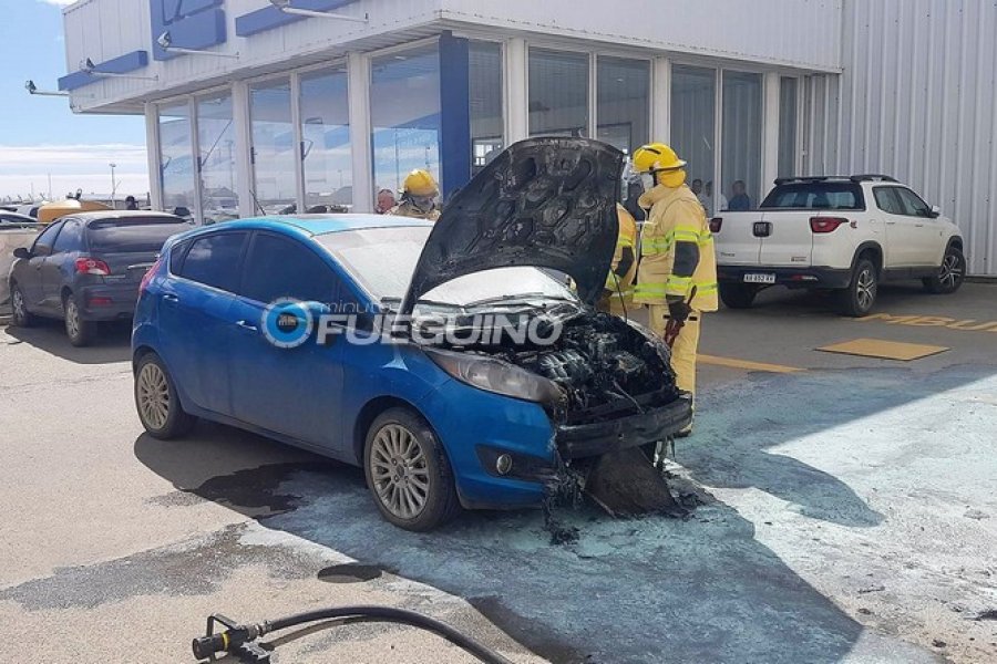 Minutos después de las 10:30 horas de este jueves personal del supermercado La Anónima se percataron que desde la zona del motor de un Ford Fiesta de color celeste se encontraba saliendo gran cantidad de humor.